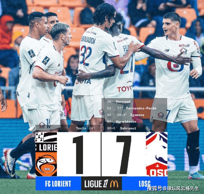 技术统计显示两队在战术执行上的巨大差距:里尔全场20次射门11次射正转化为7粒进球,控球率59.2%,传球537次,展现出极高的进攻效率;而洛里昂仅6次射门、2次射正,尽管获得17次任意球机会,却无法组织起真正有威胁的进攻。值得注意的是,里尔新援伊加马内首次出场即完成双响,完美融入球队攻击体系;而洛里昂则因后防线多名主力伤缺,被迫使用替补阵容应战,最终在对手高强度压迫下彻底失序。尤其点球被扑后,球队在最后15分钟内连丢5球,暴露出严重的心理脆弱和体能分配问题。